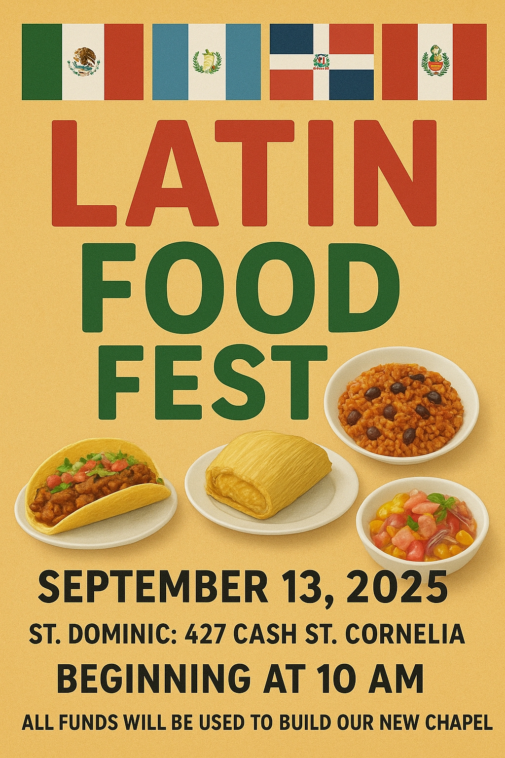 We warmly invite you to join us on Saturday, September 13, beginning at 10:00 AM at St. Dominic’s for our Latin Food Fest.